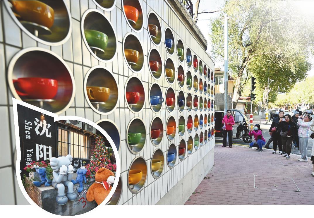 10月27日,沈阳市和平区八经咖啡小巷再添新景,一面被各种颜色咖啡杯装点的“咖啡杯矩阵墙”成为来自各地的游客及本地市民的新打卡点。