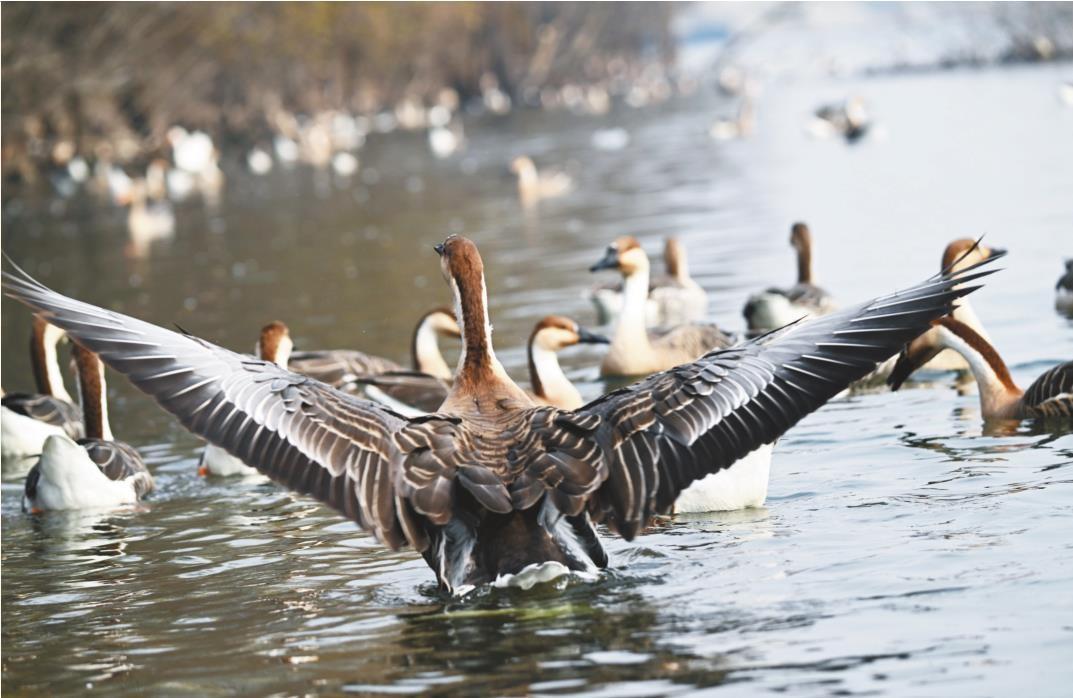 近日,沈阳浑河鸟岛流域迎来上千只鸿雁的盛大聚集。它们时而成群游弋河中,时而展翅翱翔空中,与周边自然景色相互交融,构成了和谐美妙的生态画卷,为初冬的浑河增添了灵动而绚丽的独特风景,吸引着众多市民和游客驻足观赏,拍照留念。