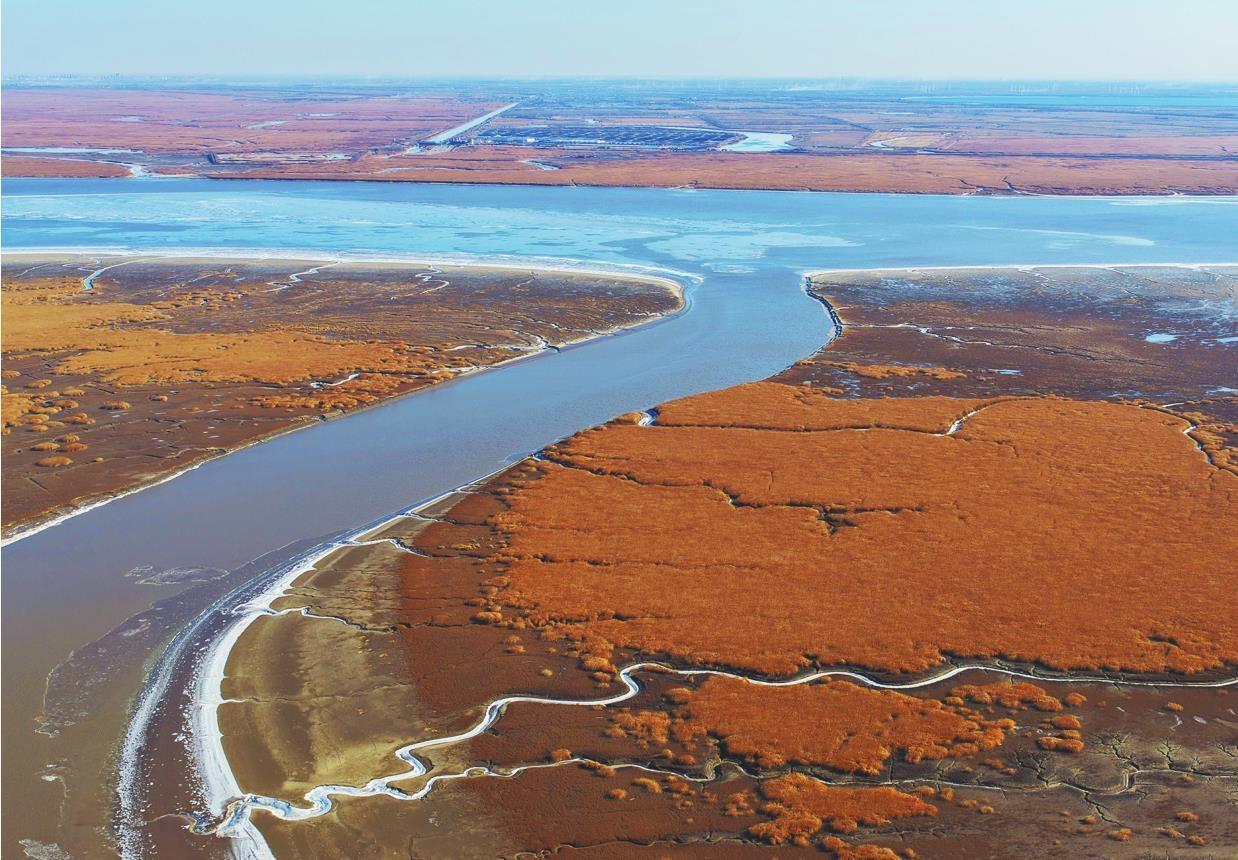 12月4日,盘锦辽河入海口湿地呈现一幅壮美的冬日画卷。随着气温持续走低,河水开始封冻,蜿蜒曲折的河道冰面宛若镶嵌在广袤滩涂上的玉带。从高空俯瞰,连绵无际的芦苇荡呈现深黄与金褐交织的温暖色调,随风起伏如波涛涌动。冰与苇交织的场景勾勒出疏密有致的线条与色块,宛如一幅气韵生动的传统国画,呈现辽河口湿地冬季特有的诗意与苍茫。这片冰苇奇观不仅是大自然的季节馈赠,更是辽河生态风貌的独特见证。