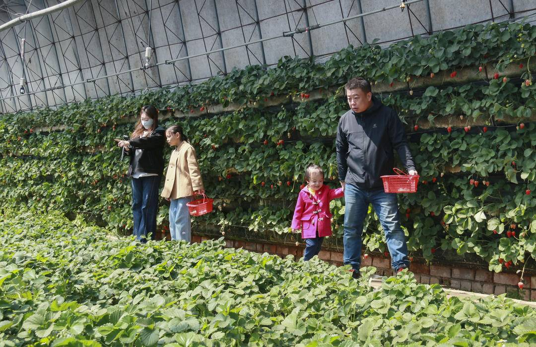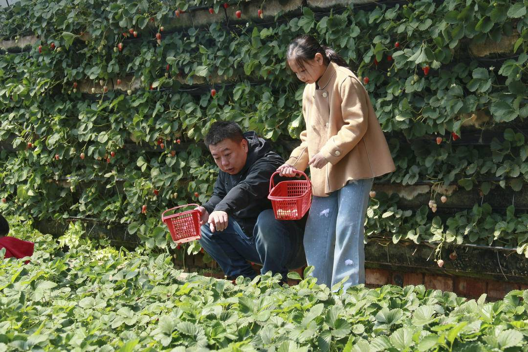 为做强采摘产业,农民张生态采摘基地不断升级,目前已建成30多个温室大棚,实行品种专种,全程采用自然温控、有机种植模式,不使用催熟剂和农药,确保草莓品质优良、口感清甜,深受市民青睐。基地依托“党建+协会+农户”模式,联动周边农户参与种植管理,带动农户稳定增收,让小草莓成为名副其实的“致富果”,为乡村农旅发展和春日经济注入活力。