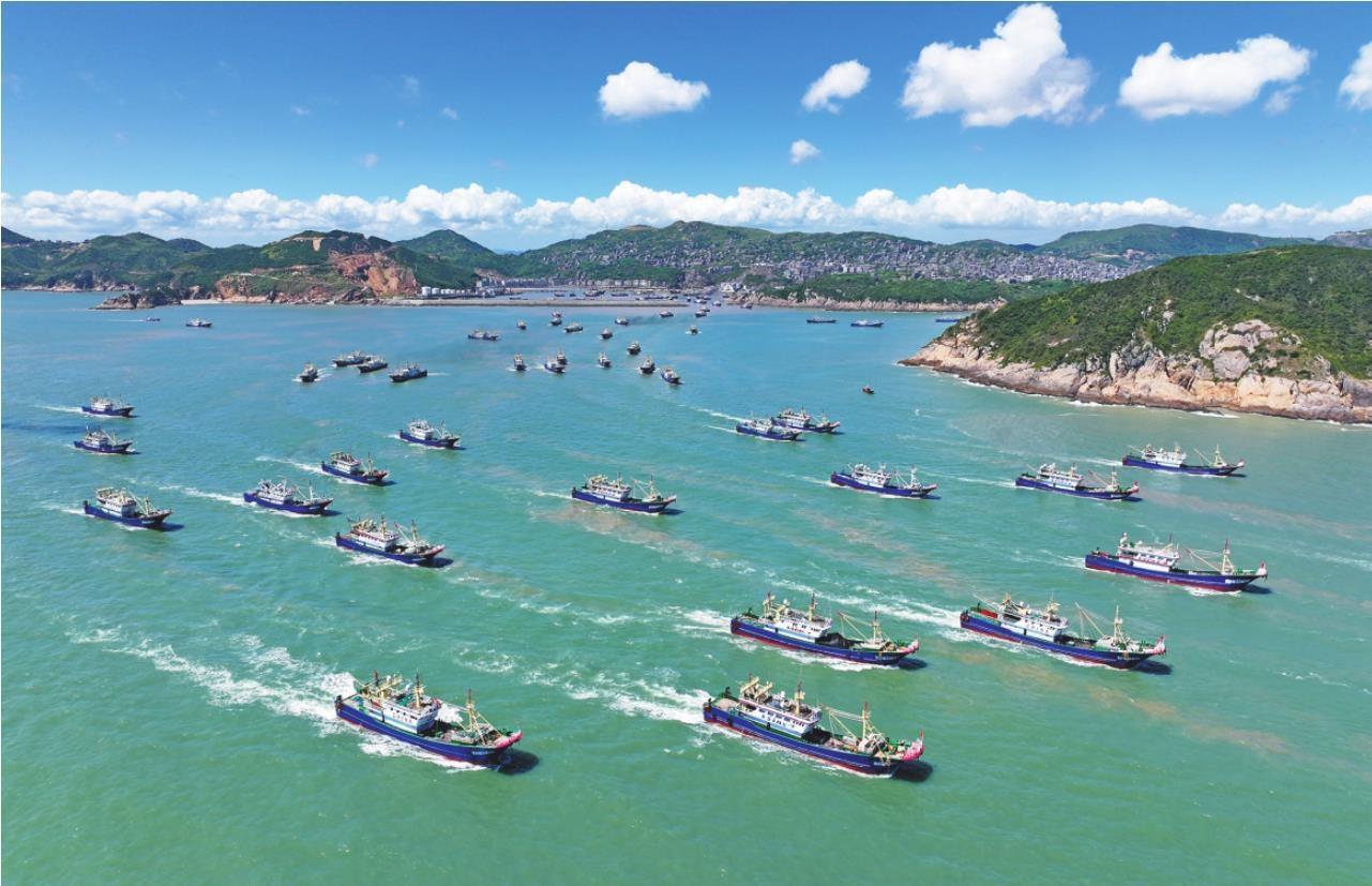 9月16日,为期4个半月的伏季休渔期结束,黄海和东海海域渔船全面开渔。图为渔船从浙江省温岭市石塘港口出发驶向东海海域进行捕捞作业。