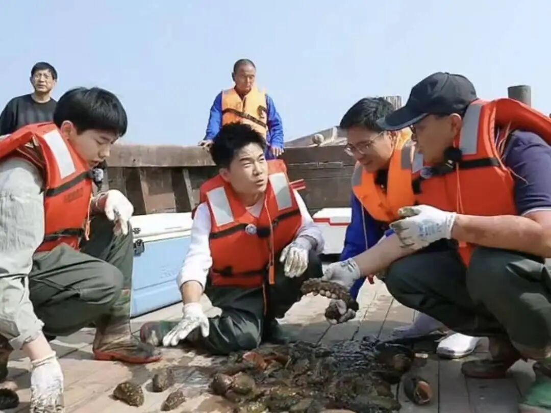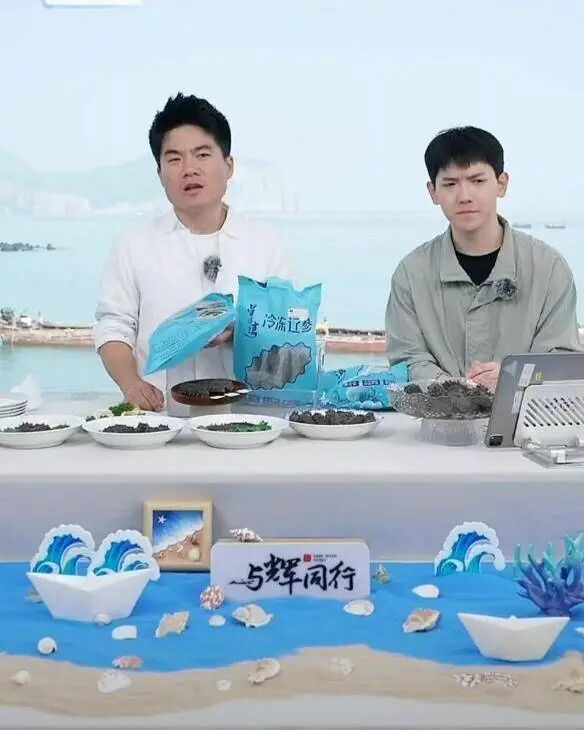 当日中午,与辉同行直播团队成员与当地渔民、海洋渔业专家一同从原种场码头乘船出海。航行途中,团队不仅欣赏了城山头海滨地貌自然保护区的山海交融风光,还深入了解了北黄海海域的生态保护现状与海洋环境特点。抵达预订的直播海域后,一行人登上小渔船体验渔民劳作,从海中打捞起海参、虾爬子、海胆、虾夷扇贝、赤甲红螃蟹、黑鱼、海螺等大连特色海产品。新鲜打捞的海产随即在船上现煮,团队成员现场品尝这份“从海底直达舌尖”的“大连鲜”,用镜头将这份鲜美实时传递给屏幕前的网友。
