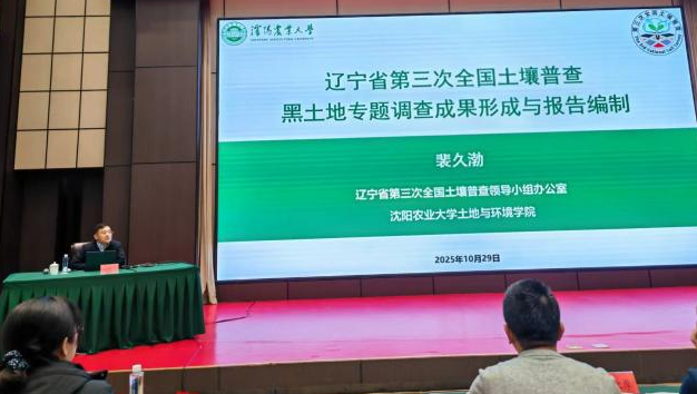 2025年10月29日,辽宁省第三次全国土壤普查黑土地土壤专题调查技术培训班在沈阳开班。培训班邀请了国家土壤普查技术专家组专家,省级黑土地土壤专题调查成果编制负责人裴久渤教授、辽宁省土壤普查技术专家组专家、省级耕地质量等级评价成果编制负责人李双异教授进行现场授课。市县级土壤普查办相关负责同志和各级成果编制单位技术负责人共计100余人参加培训。