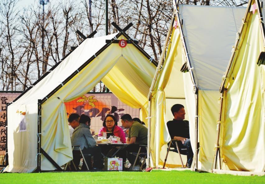 4月12日,营口西海岸迎来春日晴好天气,夕阳为滨海岸线镀上暖金,大批市民前来露营打卡,尽享春日闲暇。
