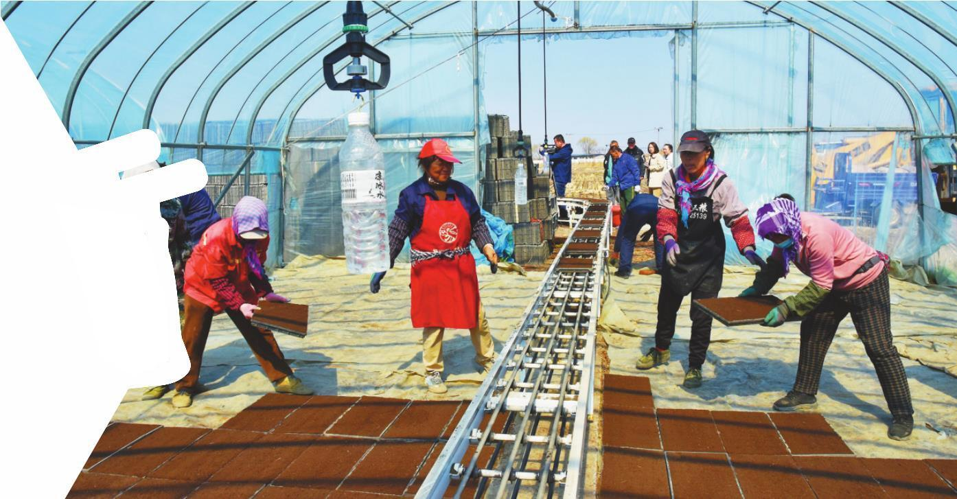 4月7日,在盘锦市大洼区长财农机合作社的育秧大棚外,工作人员将育秧盘整齐有序地送入传输带,经过床土、播种、覆土等一系列工序,一个个完整的育秧盘成品快速出炉。工人分工协作、手脚麻利,小心翼翼地将育秧盘整齐摆放在大棚内的苗床上,待育秧盘摆满后,再均匀铺上一层无纺布。随后,智能喷灌系统启动,细密的水雾均匀覆盖育秧盘,为种子萌芽蓄力。