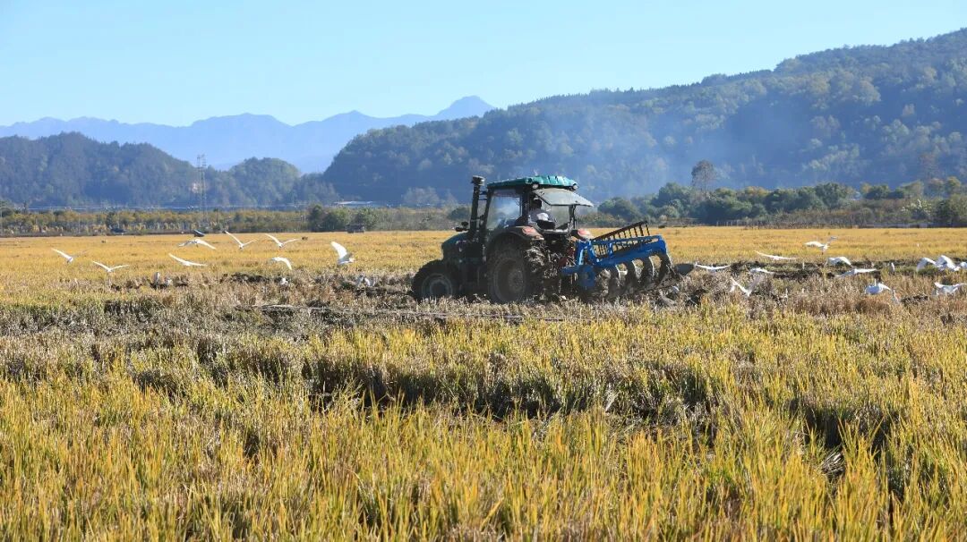 12月7日,云南省腾冲市和顺镇大庄村农民驾驶农机翻耕稻田,准备种植冬季马铃薯。