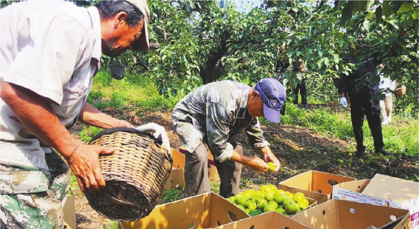 9月13日,鞍山市千山区大屯镇的南果梨种植区,一派热闹景象,果农们正满心欢喜地采摘已成熟的南果梨。大屯镇是鞍山南果梨的主要产区,每年秋季,一车车南果梨从这里发往全国各地。