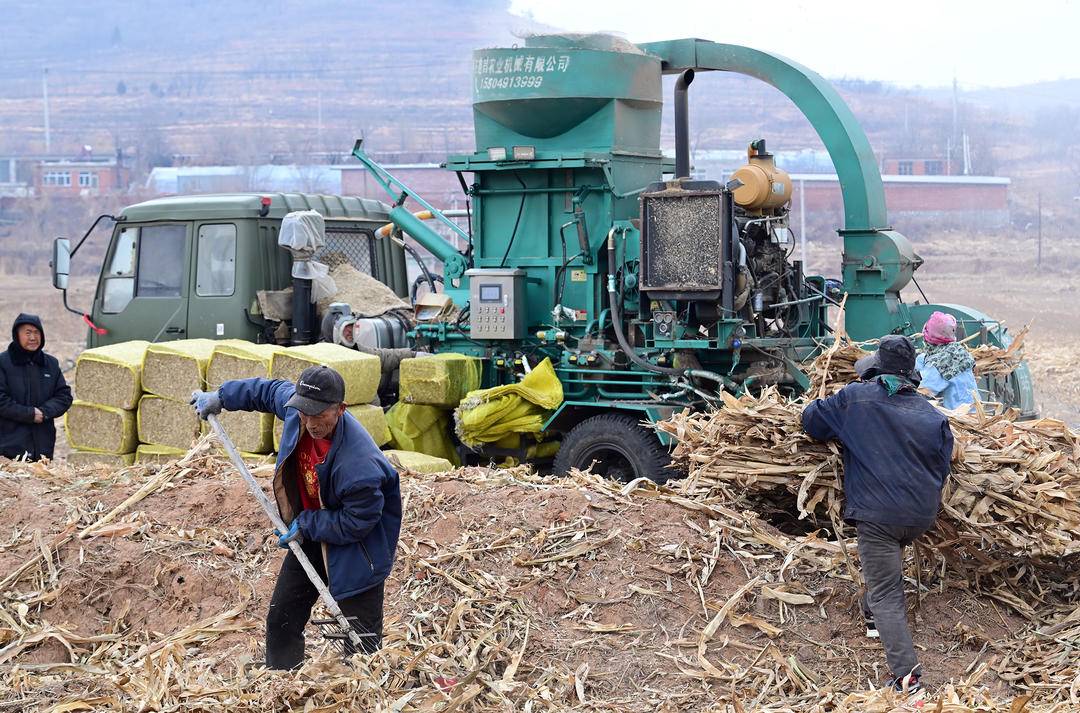 田野之上,农机轰鸣作业,村民们正将玉米秸秆压缩打包,变废为宝制成优质牛羊饲草,实现秸秆资源化利用;冷棚区域内,农户们分工协作,有的在棚内精细覆膜,有的抓紧整理棚外保护膜,全力为3月1日茄子秧苗大面积定植做好准备,处处涌动着抢抓农时、干事创业的火热气息。