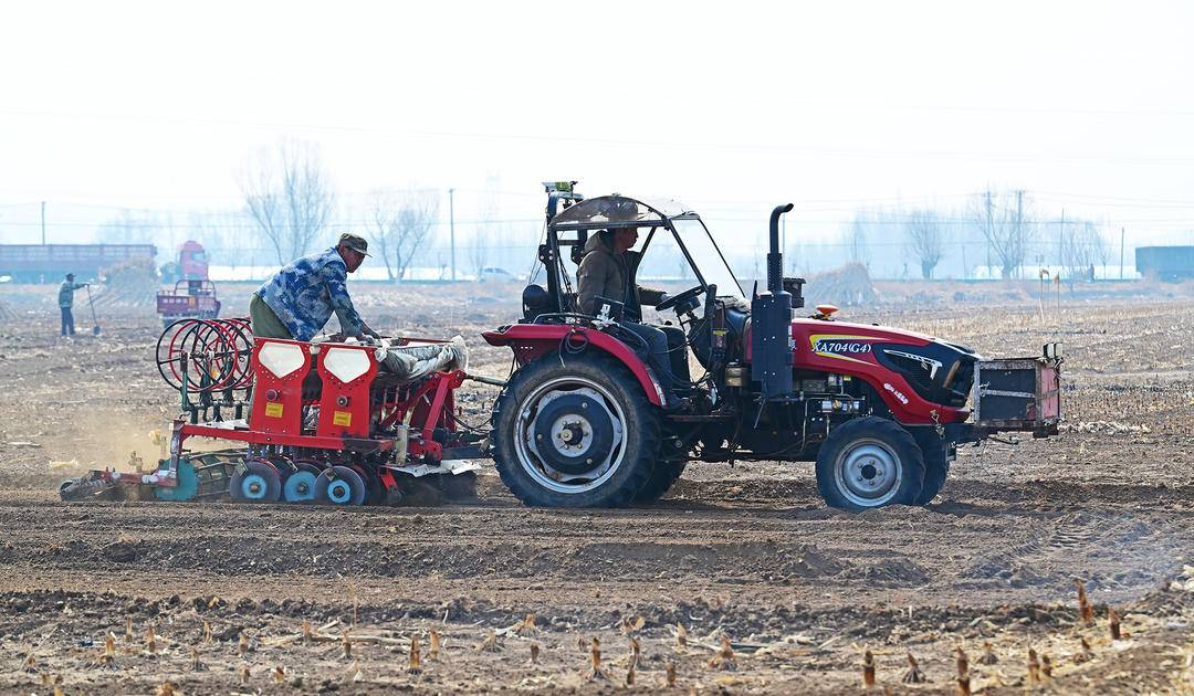随着气温回升,白腰村的田间地头一片繁忙景象。村民们驾驶着大小播种机有序作业,机器穿梭往返,将种子与肥料同步播撒入土,覆土、碾压一气呵成,高效完成播种工序。“趁着天气回暖,赶紧把麦子种下去,早播能让小麦更好地适应土壤,提升品质。”正在田间忙碌的村民满脸喜悦,他家两亩地下茬为白菜,今年套种春小麦,“按好年景算,小麦加上白菜的收入,两亩地能有2万多元,这日子越过越有奔头了。”