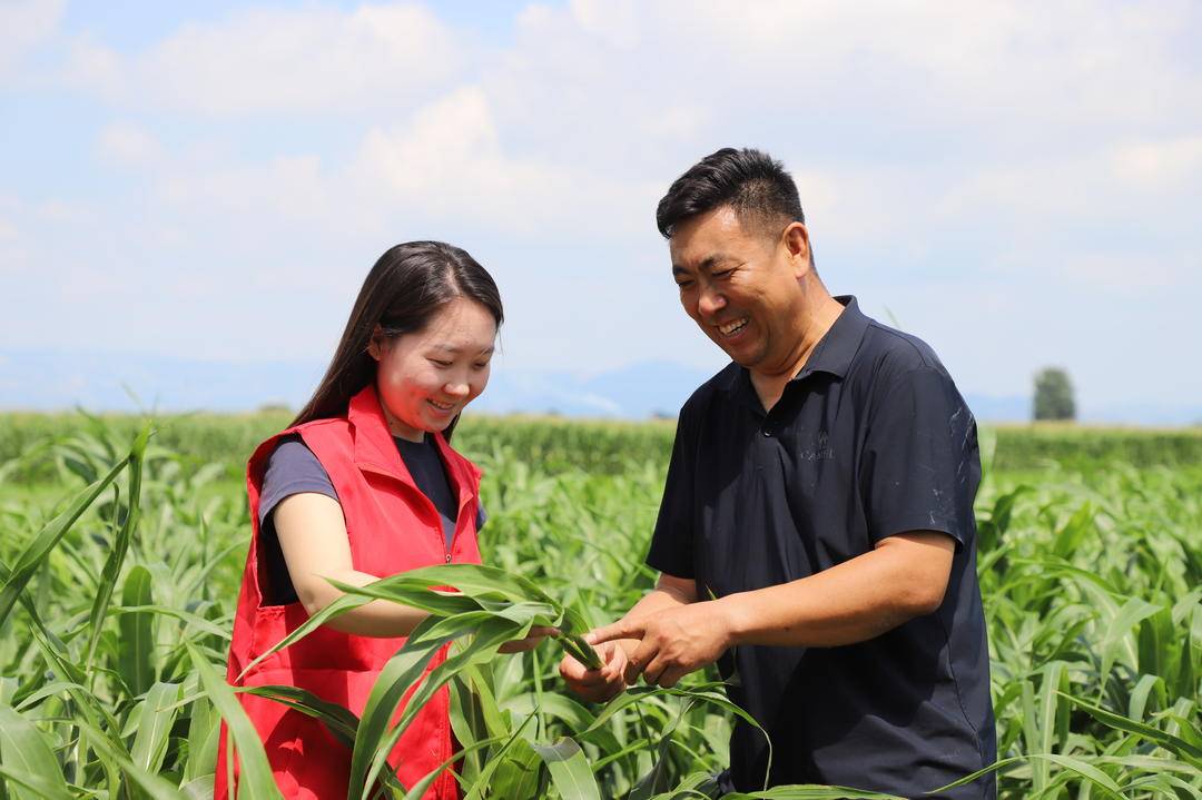 农技人员深入田间地头,帮助农民进行农作物病虫害的防治。