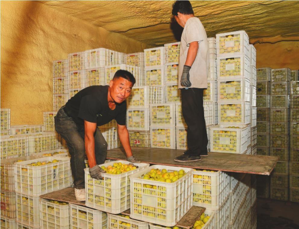 图③为把南果梨运到冷库储存,错峰上市,可以卖个好价钱。