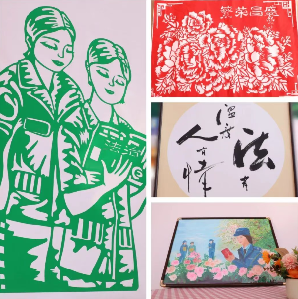 “法律与我”主题艺术作品展成为艺术节的一大亮点。展览涵盖书法、绘画、指画、刻板画、剪纸、刺绣等多种形式,其中不乏非遗手工艺作品。罪犯们以笔为媒、以艺寄情,将对法律权威的尊重、对美好生活的憧憬融入创作之中。“创作时,我一遍遍回想曾经因不懂法犯下的错,也更加明白守法对人生的意义。现在的我努力学法,就是想重获新生。”一位展示作品的罪犯真挚地说道。每一件作品都是一次心灵的洗礼,让法治意识在创作中悄然扎根。
